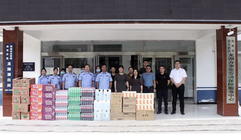 進(jìn)入“七下八上”防汛關(guān)鍵期以來,鄭州雨量明顯增多,防汛工作成為當(dāng)前關(guān)系人民生命財產(chǎn)安全和社會大局穩(wěn)定的一件重要任務(wù)。為切實(shí)做好防汛救災(zāi)工作,加強(qiáng)安全穩(wěn)定共建聯(lián)建,8月3日下午,在黨委委員張華的帶領(lǐng)下,集團(tuán)深入轄區(qū)龍湖派出所開展“警民情 一家親 心連心”慰問活動,向汛期堅(jiān)守一線的公安干警送去深切關(guān)懷與慰問。集團(tuán)信訪、黨群、辦公室代表及大通公司主要領(lǐng)導(dǎo)參加了本次活動。