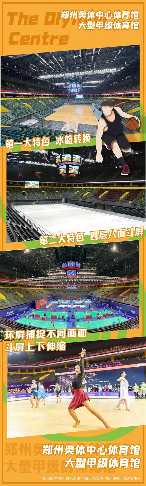 奧體中心體育館作為大型甲級體育館,空間使用靈活,場地利用率高。目前已經(jīng)舉辦了2019年世界乒聯(lián)巡回賽總決賽、2020年世界乒聯(lián)巡回賽總決賽、2019年全國羽毛球單項冠軍賽、2021年全國羽毛球冠軍賽暨第十四屆全運會羽毛球項目資格賽、2022年河南省第一屆職業(yè)技能大賽、2023永慶安瀾德云社岳云鵬·孫越相聲專場等知名賽事活動。下半年,將有更多知名演藝、賽事活動在奧體中心體育館舉辦。主館西側(cè)為總面積約2100平方米的籃球熱身館,目前已經(jīng)舉辦過籃球、跆拳道、羽毛球等體育賽事,以及企業(yè)展銷、社區(qū)聯(lián)誼、動漫展等活動;北側(cè)為冰上運動中心,擁有1800平方米國際標準冰,致力于為中部地區(qū)提供從啟蒙到精英級的系統(tǒng)化冰上運動培訓(xùn)。