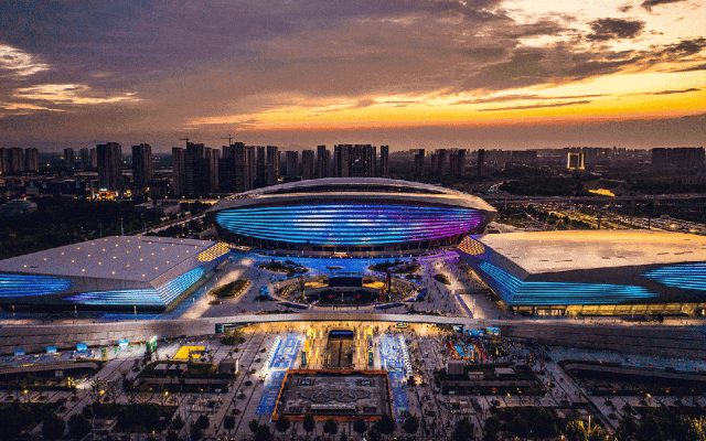 “星空夜市位于奧體中心的樞紐位置——東下沉廣場(chǎng),北側(cè)緊鄰鄭州唯一一個(gè)國(guó)際標(biāo)準(zhǔn)的冰上運(yùn)動(dòng)中心。