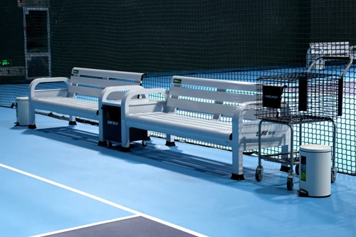 場邊配備數(shù)組休閑座椅、撿球推車