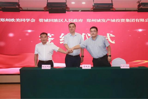 會(huì)上,管城區(qū)人民政府、鄭州歐美同學(xué)會(huì)及鄭州城發(fā)產(chǎn)城投資集團(tuán)有限公司三方代表正式簽署了戰(zhàn)略合作協(xié)議,與會(huì)領(lǐng)導(dǎo)共同為鄭州歐美同學(xué)會(huì)海創(chuàng)中心管城分中心及青年創(chuàng)新創(chuàng)業(yè)基地進(jìn)行揭牌。