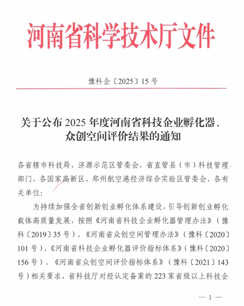 近日,河南省科學(xué)技術(shù)廳正式發(fā)布《關(guān)于公布2025年度河南省科技企業(yè)孵化器眾創(chuàng)空間評價結(jié)果的通知》(豫科企〔2025〕15號),鄭州城發(fā)集團(tuán)金岱智慧產(chǎn)業(yè)園憑借扎實的孵化服務(wù)能力、突出的創(chuàng)新培育成效,在全省223家省級以上科技企業(yè)孵化器的嚴(yán)格考評中脫穎而出,榮獲最高考核等級——“優(yōu)秀(A類)”!