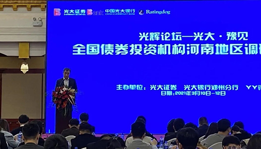 鄭州地產(chǎn)應(yīng)主辦方光大證券、光大銀行鄭州分行邀請參加“光輝論壇—光大·豫見 全國債券投資機(jī)構(gòu)河南地區(qū)調(diào)研對接會(huì)”。各方投資機(jī)構(gòu)涵蓋銀行、證券、保險(xiǎn)、信托、基金、資管等150余家投資人及河南省市20余家發(fā)行人云集此次調(diào)研會(huì),鄭州地產(chǎn)作為市屬城投企業(yè),參與此次調(diào)研匯報(bào),積極發(fā)聲、廣泛宣傳,多角度彰顯區(qū)域發(fā)展?jié)摿Α?/span>
